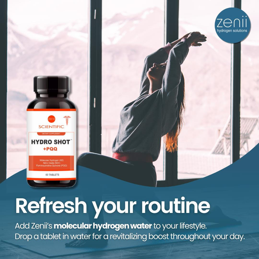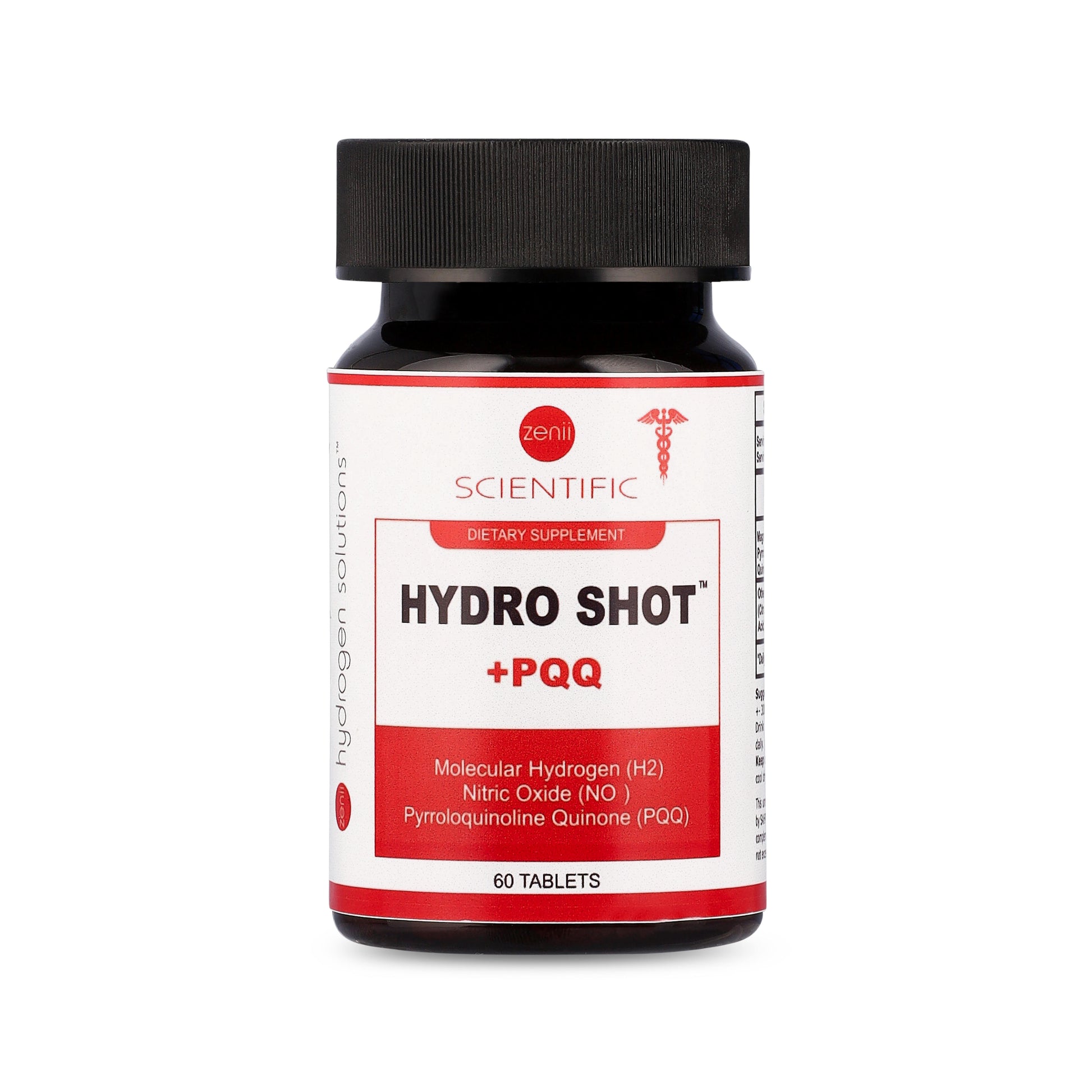 Embark on a transformative journey toward enhanced well-being with Hydro Shot PQQ Tablets 60’s, an innovative dietary supplement designed to elevate your health and performance. Developed by Zenii Scientific, this ground-breaking formula combines the therapeutic powers of Medical Molecular Hydrogen (H2), PQQ (Pyrroloquinoline Quinone), and Nitric Oxide (NO), backed by scientific research.